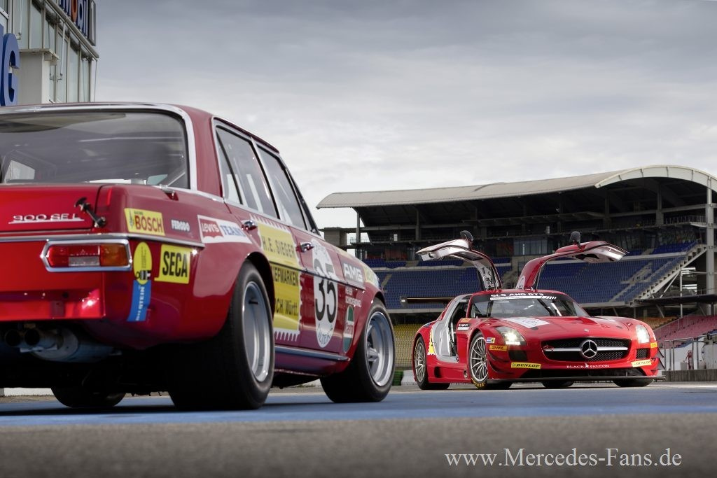 Am 30. Juli 2011 geht das Kundenteam Black Falcon beim 24-Stunden-Rennen von Spa-Francorchamps (Belgien) mit dem Mercedes-Benz SLS AMG GT3 an den Start. Der Flügeltürer mit der Startnummer 35 ist optisch im gleichen Look gehalten, wie der Mercedes-Benz 300 SEL 6.8 AMG, mit dem Hans Heyer und Clemens Schickentanz vor 40 Jahren der Klassensieg und zweite Gesamtplatz gelang. Pilotiert wird der SLS AMG GT3 unter anderem von Kenneth Heyer, dem Sohn von Hans Heyer. Beim belgischen Langstrecken-Klassiker werden insgesamt sieben Flügeltürer antreten.