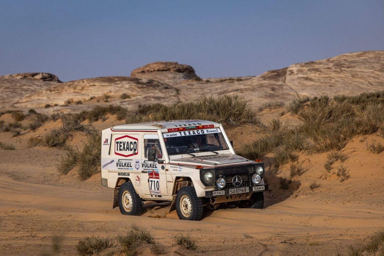 Es ist die härteste Rallye der Welt! Vom 3. Januar an führt die Dakar Rally zwei Wochen über 7500 zu fahrende Gesamtkilometer durch die Wüste Saudi Arabiens. Mit 3 Autos dabei das Völkel Dakar Team, das nach dem großen Erfolg 2024  auch in diesem Jahr wieder in der Kategorie Classic antritt. Die G-Klasse, ein 280 GE, dessen Look und Technik sich am verschollenen G-Modell des Dakar-Siegers 1983 Jackie Ickx und zwei Mercedes-Benz NG 2636 6x6, die als original Service-Trucks des Mitsubishi  Sonauto-Teams bereits ein bewegtes Rallye-Leben hinter sich haben.