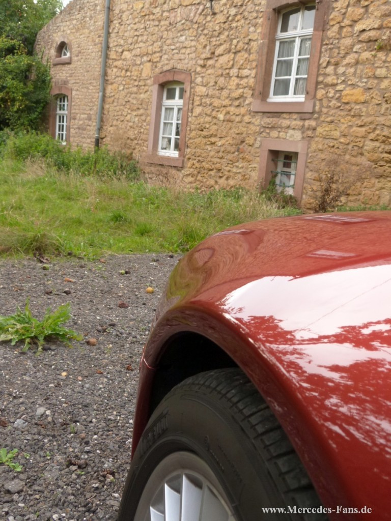 Ein AMG SL 55 in Bernsteinrot Metallic- das geht gar nicht… …so versuchte 2003 der damalige Mercedes-Benz Verkäufer Friedhelm Milas davon abzubringen, seinen Traum - Stern in dieser Farbe statt des AMG – typischen Schwarz oder Silber zu bestellen. Als Friedhelm ganz und gar nicht zu überzeugen war, half nur ein Bonitätsnachweis weiter, denn für das Auto, so der Mercedes-Mann, sei bei Nichtabnahme absolut kein Ersatzkäufer zu finden. Die Sache mit der Bonität scheint funktioniert zu haben, der Rote durfte mit dem Kennzeichen MIL AS 66 (warum nicht …55, hat Friedhelm uns nicht verraten) seine Garage in Zülpich beziehen. Unkonventionell ging´s dann für den roten Renner weiter, er wurde am 14.10.2007 auf dem Hockenheimring zum ersten und bisher einzigen roten Fahrzeug, das je für AMG an einer DTM – Fahrerparade teilgenommen hat. Dass so etwas wohl nur mit einer Sondergenehmigung machbar ist, dürfte selbstverständlich sein. Als Friedhelm 2003 seine rote Rakete kaufte, waren seit der Erstvorstellung im dritten Quartal 2001 knapp zwei Jahre und die ersten Modifikationen des bis dahin leistungs- und drehmomentstärksten Modells des R 230 vergangen. Der neu entwickelte 5,4 l (genau: 5439 ccc) V8-Motor trat zunächst mit 476 PS und einem maximalen Drehmoment von 700 Newtonmeter, die schon bei 2650 U/min. erreicht wurden, vor sein Publikum. Dabei lagen bereits 500 Newtonmeter bei 1500 U/min an. Von 0 auf 100 km/h bescheunigte das Kraftpaket in 4,7 Sekunden. Der zwischen den Zylinderblöcken eingebettete, nach dem Lysholm – Prinzip arbeitende Schraubenkompressor mit einem maximalen Ladedruck von 0,8 bar sorgte für diesen Leistungsschub Ein neu geformter Stoßfänger und Frontspoiler sowie zusätzliche Seitenschweller, 18 Zoll Felgen und eine Vierrohr- Auspuffanlage gaben dem AMG das standesgemäße Äußere. Eine Delikatesse für sich ist allein die vordere Bremsanlage. Mit 360-Millimeter- Scheiben, Achtkolben – Festsätteln und einer Belagfläche von 220 Quadratzentimetern pro Scheibe hat sie die doppelten Dimensionen wie die des parallel angebotenen 500 SL. Spiegel Online schrieb seinerzeit über das Auto: „Leichtes Schwindelgefühl macht sich breit, wenn der Top – Roadster von dem kaum merkbaren Fünfgang – Automatikgetriebe wie von einem Expander gezogen auf die 200 km/h zurast.“ Bei 250 km/h war dann, elektronisch geregelt, Schluss mit diesen Gefühlen. Bis zu Friedhelms Kauf wurde die Motorleistung noch einmal auf 500 PS angehoben und später weiter auf 517 PS gesteigert. Doch zurück zu MIL AS 66: Zunächst, nämlich bis 2006, lief das Auto im Alltagseinsatz mit allem Spaß, den solch ein „Dienstfahrzeug“ bereitet. Danach wurden die Einsätze etwas ruhiger. Inzwischen hat der Wagen 86 800 km auf der Uhr. Veranstaltungen und Fahrerlehrgänge sind die derzeitige Hauptbetätigung. Seit 2010 ist der Rote, natürlich mit Friedhelm und seiner Frau Angelika, regelmäßiger Besucher der Schönen Sterne und ist dort immer (siehe oben: Farbe!) eine der Besonderheiten auf dem Stand der AMG–Freunde Deutschland. Auch deren Jahrestreffen besuchen Friedhelm und Angelika regelmäßig. Dies geschieht in fast „dienstlicher“ Funktion, denn Friedhelm ist Schatzmeister dieser Vereinigung der Freunde schneller Sterne, die seit 2005 besteht und über 100 Mitglieder zählt. Dass das Clubmotto EINER FÜR ALLE; ALLE FÜR EINEN wirklich gelebt wird, war in den letzten Jahre in Hattingen bei den Schönen Sternen immer wieder zu fühlen. Von der Teilnahme an der DTM Fahrerparade 2007 hat sich Friedhelm eine ganz besondere Erinnerung in Form eines Ölgemäldes gegönnt: Von Ante Milas, Theologe und Meisterschüler der Düsseldorfer Kunstakademie (Friedhelm betont: kein Verwandter und ansonsten hauptsächlich mit religiösen Motiven befasst) gemalt, hängt der rote Renner an prominenter Stelle über Friedhelms Schreibtisch. Und dann wurde der Sportler in Rot 2011 auch noch Weltrekordler. Er war bei der Guinness Rekordfahrt auf dem Nürburgring dabei, als am 15.Oktober 219 Mercedes-Benz Fahrzeuge in 24,433 km (15,18 Meilen) langer Formation zum Weltrekord auf dem Nürburgring paradierten. Auch auf pädagogischem Gebiet hat sich Friedhelms Auto inzwischen bewährt. Im Westermann Schulbuch Kuhn Physik SI Ausgabe 2007 Niedersachsen/Gymnasium erscheint der Wagen auf Seite 232 im Kapitel „Arbeit und Leistung“. In Bezug auf Leistung sicherlich ein treffender Repräsentant. Mit seiner geballten Kraft und seinem für einen AMG außergewöhnlichen Auftreten ist er sicherlich auch bei den nächsten Schönen Sternen ein willkommener Gast. Jedenfalls freuen sich Friedhelm und seine Frau Angelika schon auf ein Wiedersehen unter -nicht nur- AMG-Freunden. Technikkasten Baureihe: R 230 Fahrzeugtyp: SL 55 AMG Baujahr: 2003 Motor:  AMG V8, Dreiventil – Kompressor. 5439ccm, 500 PS Getriebe: 5-Gang Automatik mit drucktastengesteuertem manuellem Fahrprogramm Bremsen: Verbundscheibenbremsen, innenbelüftet Räder: 18 “ Alu Vielspeichenfelgen Reifen:  vorn 255/40 R 18 , hinten 285/35 R 18  Fahrwerk: AMG, aktive Fahrwerkregelung, Vorderachse: Doppelquerlenker mit Schraubenfedern, Querstabilisator; Hinterachse: Mehrlenkerachse mit Schraubenfedern, Querstabilisator Karosserie: AMG Innenraum: AMG Serie
