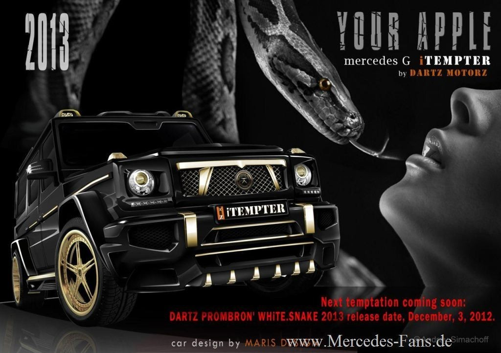 Für die kleine aber weltweit berühmt-berüchtigte Fahrzeugmanufaktur Dartz Motorz in Lettland, wo man schon mal Walpenisleder für die Innenausstattung verwendet, ist das Außergewöhnliche das Alltägliche. Nun hat Dartz mit dem "iTempter" auf Basis der Mercedes G-Klasse neues SUV angekündigt, dessen Formen und Farbgebung in Schwarz und Gold wieder einmal recht eigenwillig wirken. Der iTempter ist keine zarte, sondern eine harte Versuchung mit äußerlich eher...,