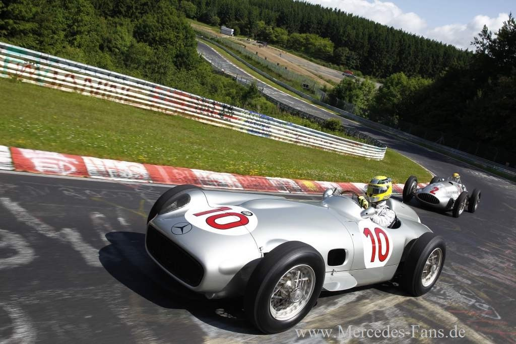 Am Donnerstag, 04. Juli fuhren Nico und Lewis zur Einstimmung auf das deutsche Heimrennen des Teams in einem historischen Silberpfeil vom Typ W 196 respektive W 154 eine Runde auf der Nürburgring Nordschleife. Auf Rennwagen dieser beiden Modelle konnten Juan Manuel Fangio (1954) beziehungsweise Richard Seaman (1938) am Nürburgring gewinnen. Die legendäre Nordschleife spielte in der Geschichte der Silberpfeile immer...,