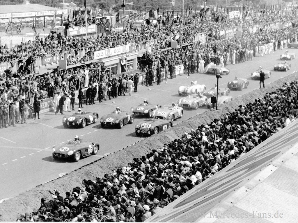 Der Neuaufbau und die Wiederaufnahme der Produktion von Personenwagen und Nutzfahrzeugen sind die dringendsten Aufgaben der Daimler-Benz AG nach dem Ende des Zweiten Weltkriegs. Vor diesem Hintergrund hat ein erneuter Einstieg in den Rennsport keine Priorität und muss mit kleinen Schritten geschehen. Erste Personenwagen vom Typ Mercedes-Benz 170 V werden 1946 wieder gebaut, aber mit diesem Modell, das schon von 1936 bis 1942 hergestellt worden ist, lassen sich keine Rennerfolge erzielen. Im Jahre 1951 geht man bei Mercedes das Thema Motorsport konzentrierter an. Ein Jahr später holt der Mercedes 300 SL (W194) die ersten Erfolge. Bald darauf dominieren die Mercedes Sterne die Konkurrenz fast nach Belieben. Die Jahre 1954 und 1955 werden zu Triumphfahrten für den W 196 R und den 300 SLR.