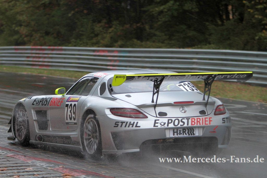 Zugegeben, das Wetter hätte besser sein können, das Ergebnis nicht. der von Platz sieben in Rennen gegangene Mercedes Benz SLS AMG, pilotiert von Thomas Jäger und Christopher Haase hat den vorletzten VLN-Lauf gewonnen. Der zweite SLS AMG (Bernd Schneider/Chris Mamerow) ging von der Pole Position ins Rennen, schied aber an den Folgen eines Unfalls aus! Die Premiere des Audi RS TT endete auf dem achten Gesamtrang - für das Auto sicher kein schlechtes Ergebnis.