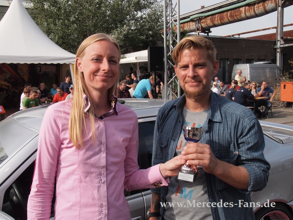 Na also geht doch: Petrus ist ein Mercedes-Fans. Im dritten Jahr strahlten über Hattingen nicht nur die SCHÖNEN STERNE, sondern mit dem polierten Chrom und Blech endlich auch die Sonne. Was dem Mercedes-Treffen einen neuen Besucher-Rekord bescherte: Insgesamt kamen am Wochenende rund 5.100 Besucher und knapp 1.500 Autos zu den SCHÖNEN STERNEN. Hier zeigen wir die Bilder der Pokalträger