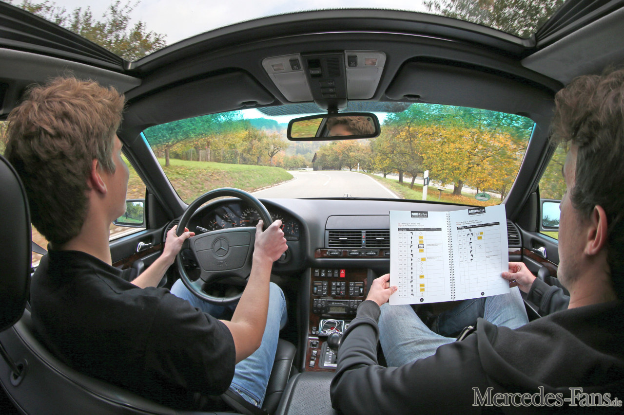 Eine Rallye nur für Mercedes-Fans. Kniffelige Aufgaben und eine schöne Streckenführung an zwei Fahrtagen – so lautete das Grundrezept für die erste MIB-Rallye. Und rückblickend dürfen wir festhalten, es hat allen Beteiligten anscheinend gut gefallen. Wobei zu ergänzen ist, das Roadbook der MIB-Rallye deutete bereits auf der zweiten Seite an, dass nicht bierernste Ergebnisjagd im Vordergrund steht: „Vergessen Sie alles, was Sie von Rallyes je zu wissen glaubten!“ Gute Laune und ein gemeinsames Erlebnis der Marke Mercedes-Benz stand bei der MIB-Rallye im Vordergrund. Dass obendrein am Sonntag in Hockenheim noch der Gewinn der DTM gefeiert werden durfte, war ein schönes – wenn auch nicht geplantes – Extra. 42 Teams mit den unterschiedlichsten Autos stürzten sich in das Abenteuer MIB-Rallye und haben es am Ende wohl auch nicht bereut. Die Palette reichte vom 220 SE Heckflosse über diverse SL/SLC der 107er Baureihe bis hin zum Gumball 3000-AMG GT-Trio oder einem raren E 60 T-Modell Einzelstück.