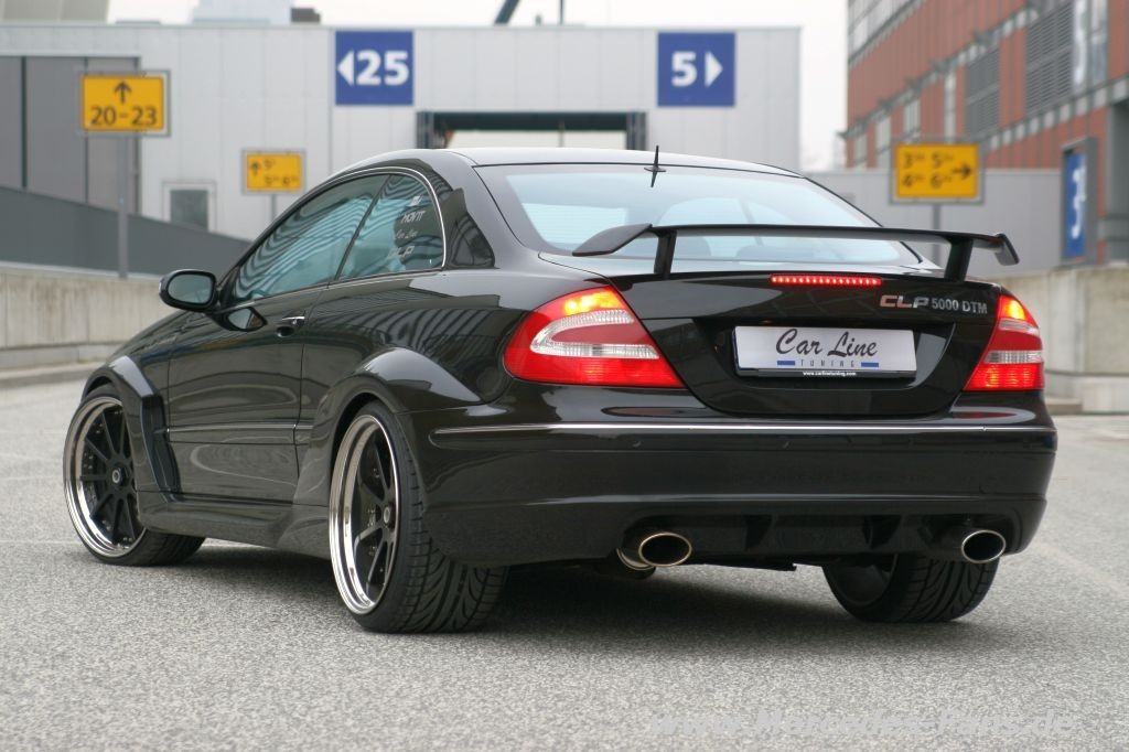 Breite Backen, geschmiedete Aluräder, Bremsscheiben groß wie Eisenbahnräder und ein furchterregender V8 Sound, das sind die markanten Merkmale des neuen CLP 5000 DTM Mercedes aus dem Hause CarLine. Ihr habt richtig gelesen, das Kürzel „DTM“ haben die Sinsheimer Tuner für nicht wenig Geld gekauft. So können die Mercedes Tuner ihren Karosserie-Kit mit der markanten Bezeichnung vermarkten. Doch in diesem Falle handelt es sich nicht um einen DTM-CLK von AMG für schlanke 236.000 Euro. Als Basis dient immerhin ein 500er mit Achtzylinder, welcher Dank Duplex Edelstahl Auspuffanlage kernig hörbar ist.