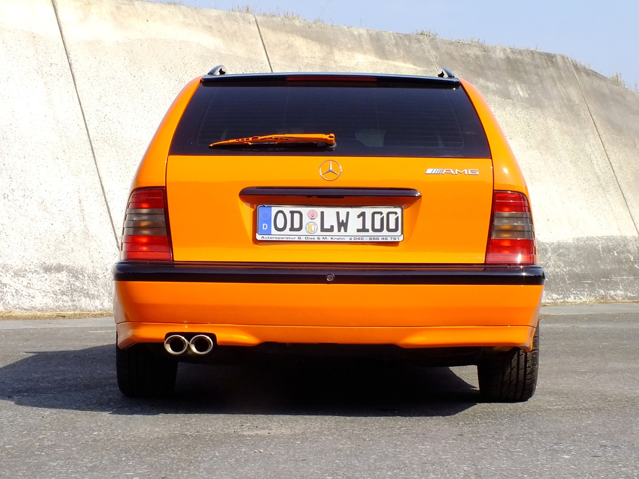 Orangefarbener Mercedes C180 bietet dem grauen Alltag Paroli