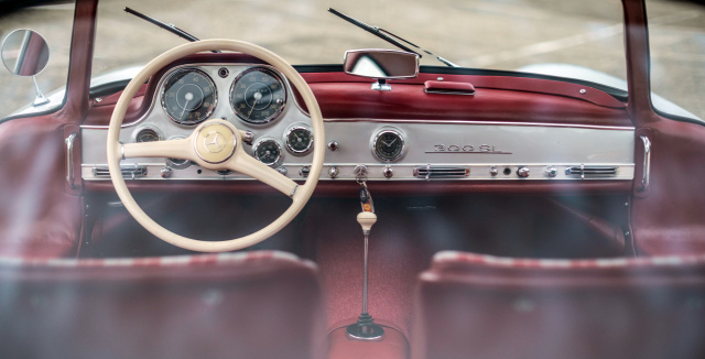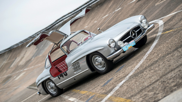 Der Mercedes-Benz 300 SL Flügeltürer der 1950er Jahre ist einer der beliebtesten Sportwagen aller Zeiten. Das legendäre Design von Karl Wilfert umfasst drei verschiedene Fahrzeuge: Den Rennwagen 300 SL Coupe von 1952 (W194), den Rennwagen SLR (W196) ein paar Jahre später und den 300 SL Serienwagen (W198). Rund 1.400 Modelle des W198 Flügeltürers wurden in den ersten drei Jahren von 1954 bis '57. Diese kamen mit einer Stahlkarosse mit Aluminiumtüren und Hauben – 29 Modelle waren komplett aus Alu gefertigt und sind heute ein Vermögen wert.