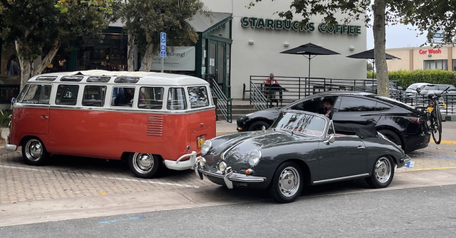 Ein paar Meter weiter hat sich eine üppige Porsche-Enklave gebildet. Gleich mehrere 911 GT2 RS, GT3, GT3 RS und sogar ein seltener 993 RS sind zusammen mit den Besitzern nach Malibu gefahren, um sich auszutauschen, andere Autofans zu sehen und einen Kaffee Latte zu trinken. Jason bewegt im Alltag einen Porsche Taycan. „Doch den fahre ich nur in der Woche ins Büro und zum Einkaufen“, lacht der 41jährige Amerikaner, „elektrisch fährt man doch nicht am Wochenende. Da holen wir die echten Autos raus, die Spaß machen.“ Tom, an diesem Wochenende aus Texas auf Urlaub in Malibu legt nach: „Elektroautos – klar, die kommen. Aber bei uns stehen alle auf die großen Pick Ups und sonst einen Sportwagen. Ich habe einen 911 Targa - tolles Auto. Elektrisch fahren, dann kann ich ja gleich in einen Van steigen.“