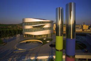 Auch das Gebäude zieht die Aufmerksamkeit auf sich. Die mehrfach preisgekrönte Architektur des holländischen Architekten Ben van Berkel und das vom Stuttgarter Museumsgestalter HG Merz entwickelte Ausstellungskonzept ergänzen sich bis ins Detail: Auf neun Ebenen verschlingen sich die Wege in Form einer Doppelhelix entlang einer Zeitachse von der Erfindung des Automobils bis in die Gegenwart.
