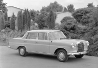 1961 debütierte die Baureihe W 110 und übernahm die Rolle eines Basis-Modells. Dementsprechend lag der Fokus hier nicht auf den neu konstruierten Sechszylindermotoren, wie sie die Baureihe W 110 trug, sondern auf robusten Vierzylindern und einem Dieselmotor. Die Verkaufsbezeichnungen lauteten 190 bzw. 190 D. Optisch konnte man die Baureihen auf den ersten Blick unterscheiden: Während der W 111 große ovale Scheinwerfer im Hochformat besaß, musste sich der W 110 mit einfachen Rundscheinwerfern begnügen.