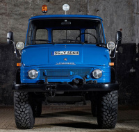 Ursprünglich wurde der 1975 montierte Unimog bei der deutschen Luftwaffe als Flugzeugschlepper in Dienst gestellt. Der von einem 5.7-Liter Sechszylinder-Dieselaggregat (84 PS) angetriebene Mercedes, verfügt über eine Wandlerkupplung, um ein ruckelfreies Anfahren zu ermöglichen.Nicht, dass den Jet-Piloten ausgerechnet beim Rangieren übel wird....!
