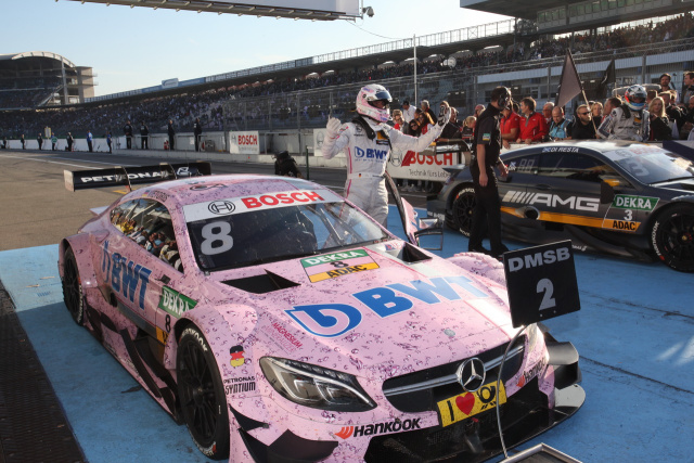 Das Mercedes-AMG DTM Team beendete die DTM-Saison 2016 am Sonntag in Hockenheim vor 142.000 Zuschauern (am gesamten Wochenende) mit zwei Podestplätzen. Christian Vietoris (BWT Mercedes-AMG C 63 DTM) und Paul Di Resta (Mercedes-AMG C 63 DTM) belegten im letzten Saisonlauf beim Heimrennen von Mercedes-AMG die Plätze zwei und drei. Vietoris profitierte dabei von einem riskanten, frühen Boxenstopp seiner Mücke-Crew und kämpfte sich hinterher mit einer starken Leistung durch den Verkehr. Er machte Zeit auf die Führenden gut und lag nach deren Stopps vor ihnen. Nach ganz vorn reichte es leider nicht mehr. Dort kämpfte Audi-Pilot Edoardo Mortara um seine letzte Chance in der Titelentscheidung, die BMW-Fahrer Marco Wittmann mit einem vierten Platz allerdings für sich entschied.