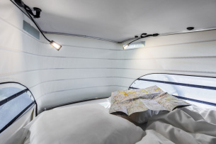 Auch das kleinste Mitglied der Mercedes-Benz Vans Familie lässt sich mit einfachen Mitteln zu einem Reisemobil für bis zu zwei Personen verwandeln. Das Dachzelt TopDog von Zeltspezialist 3DOG camping macht Kurzurlaube oder aktiven Freizeitsport mit Spontanübernachtung mit dem Mercedes-Benz Citan möglich. Das Klappdach-Zelt mit Cover inklusive Wohnzelt und integriertem Fußboden lässt sich in wenigen Minuten aufbauen. Zusammengeschnürt und auf dem Fahrzeugdach verstaut beträgt seine Höhe lediglich 25 bis 30 Zentimeter.