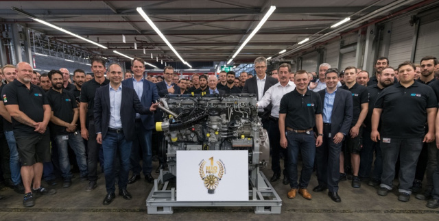 Die Produktion von Lkw-Motoren ist beim Daimler schwer in Fahrt. Wie das Unternehmen verkündet erreichten das Mercedes-Benz Werk Mannheim und die Daimler Trucks North America (DTNA) Tochter Detroit Diesel Corporation jetzt einen besonderen Meilenstein im internationalen Powertrain-Netzwerk: Zusammen haben beide Produktionsstätten insgesamt 1.000.000 Heavy-Duty-Motoren produziert und damit den Erfolg der einheitlichen Plattformstrategie für den Antriebsstrang von Daimler Trucks unterstrichen. Die stolze Mannschaft des Mannheimer Motorenwerks begleitete den Bandablauf des millionsten Reihensechszylinders, der in schweren Nutzfahrzeugen zum Einsatz kommt.