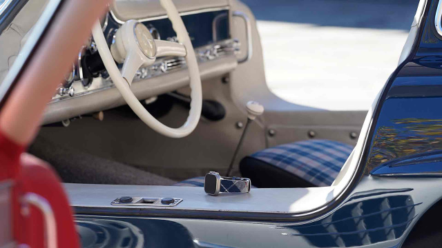 Bei klassischen Luxusautomobilen denken viele instinktiv an schweres Leder. Doch der 300 SL war ein Kind des Rennsports, ein technischer Vorreiter der 1950er Jahre. Und zu dieser sportlichen DNA gehörte oft kein Leder, sondern ein hochwertiger, atmungsaktiver Karostoff auf den Sitzmittelbahnen. Er sorgte für besseren Halt in Kurven und angenehme Temperaturen im heißen Cockpit.