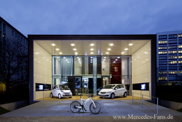 Um das Zusammenspiel von Haus und Fahrzeug auch visuell zu verdeutlichen, wurde exklusiv für das Projekt Effizienzhaus-Plus mit Elektromobilität eine Fahrzeug-Sonderedition entworfen, die vom Mercedes-Benz Design Bereich und dem Architekten des Effizienzhaus-Plus Prof. Werner Sobek gemeinsam entwickelt wurde. Das Design von Exterieur und Interieur der Mercedes-Benz A-Klasse E-CELL und des smart fortwo electric drive der zweiten Generation wird in Anlehnung an das Design und Farbkonzept des Hauses von Weiß und Naturtönen dominiert. Ein speziell entwickelter Perleffektlack in Platinweiß metallic verleiht den Fahrzeugen eine starke Ausstrahlung und reduziert durch Reflektion die Wärmeeinstrahlung. Der Materialwechsel von Naturtextil wie Wolle, Leinen und Nappaleder bildet darüber hinaus einen attraktiven Kontrast. Dank des einheitlichen Designs kann sich die Familie auch in den Autos wie zuhause fühlen das Konzept, Wohnen und Fahren komfortabel und nachhaltig miteinander zu verbinden, wird dadurch auch visuell und emotional umgesetzt.