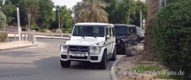 "Einmal ist kein mal und aller guten Dinge sind drei" hat sich wohl der Mercedes-Fan gedacht, dessen G63-Trio des Modelljahres 2013 auf einem Video festgehalten worden ist. Wer fährt denn so etwas? Der stolze Besitzer der drei Mercedes G-Klassen mit AMG DNA ist Scheich Muhammad bin Raschid Al Maktum - seines Zeichens Herrscher des Emirats Dubai sowie Premierminister und Verteidigungsminister in Personalunion. Ohne Zweifel ein Mann mit Geschmack für gute Autos und einer, der sich den taffen Offroader mit Stern und Sportwagenqualitäten durchaus leisten kann. Ach, es ist schon toll, König zu sein!