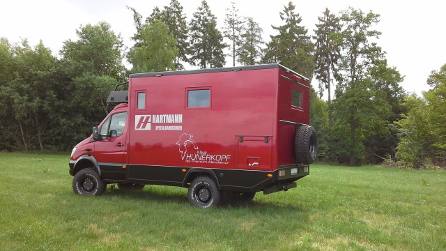 Die Kundschaft hat hohe Ansprüche an den Wohnkomfort – und will diesen auch abseits befestigter Straßen genießen können. Das umschreibt kurz die Wünsche der Klientel, für die Hartmann Spezialkarosserien und die Firma Hünerkopf fernreisetaugliche Wohnmobile fertigen. Eines davon ist der Allrad-Sprinter.