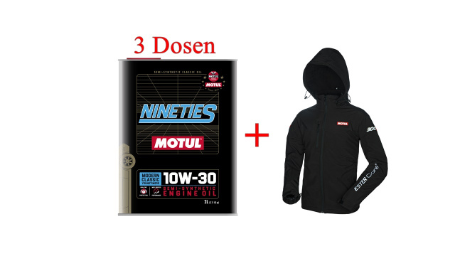 Heutige Gewinnchance: 1 x 3 Gebinde CLASSIC NINETIES 10W-30 ( insg. 6 Liter) & 1 Softshell-Jacke von MOTUL