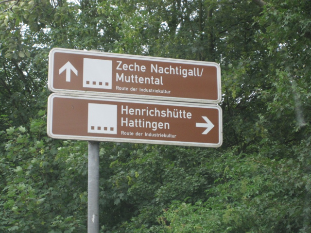 Schon an der Autobahn A43 weist das braun gehaltene "Industriekultur-Schild" auf unser Veranstaltungsgelände Henrichshütte vor der entsprechenden Abfahrt Nr. 21 / Witten-Herbede/Hattingen hin.