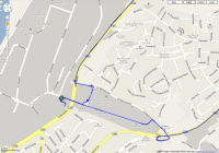 Nach der Unterführung sind es nur noch wenige Meter. An der Einmündung von rechts geht es für Teilnehmer mit Mercedes-Benz und smarts links auf das Gelände der Henrichshütte, Besucher fahren weiter geradeaus auf den Besucherparkplatz des Museums und kommen über den Eingang Museum auf das Gelände des SCHÖNE STERNE Treffens.