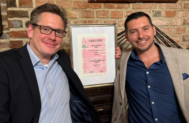 Bei der feierlichen Übergabe im Rahmen des PVH Kongresses in Köln, freuten sich David Pop (Head of Sales) und Sven Tschenker (Area Sales Manager D/A/CH) über diese besondere Ehrung. „Diese Auszeichnung vom PVH ist für uns eine wichtige Bestätigung unserer Arbeit – und zugleich ein Ansporn, weiterhin höchste Qualität und Präzision zu liefern. Vielen Dank an unsere treuen Fachhändler!" so Sven Tschenker.