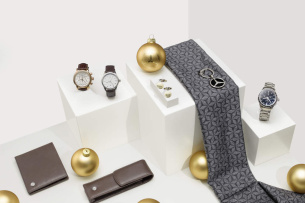 Ob es schon Zeit für das Christkind ist, verrät ebenso die Armbanduhr „Elegant Basic“. Das Modell mit Quarzwerk ist in zwei Varianten erhältlich: schwarzes Zifferblatt mit schwarzem Kalbslederband oder cremefarbenes Zifferblatt mit braunem Kalbslederband. Das Edelstahlgehäuse ist mattiert, das Mineralglas gehärtet und entspiegelt. Die Uhr besitzt eine vertiefte Minuterie, applizierte Indexe und einen 3D-Stern auf dem Zifferblatt. Der Durchmesser beträgt 39 mm, die Wasserdichtheit wurde bis 5 ATM geprüft.