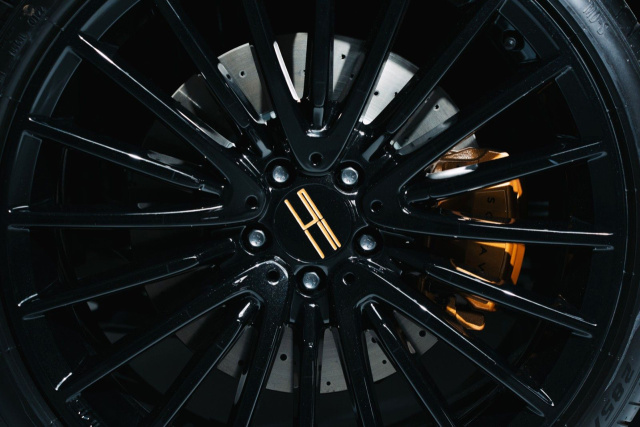 Für ein harmonisches und zugleich eindrucksvolles Gesamtbild sorgt die edle Polsterung aus schwarzem Nappaleder mit goldener Ziernaht und Einsätzen aus Carbonleder. Kunststoffteile sowie der gesamte Bodenbereich vorn und hinten wurden zusätzlich mit feinstem Leder aufgewertet, was den Innenraum spürbar veredelt.
