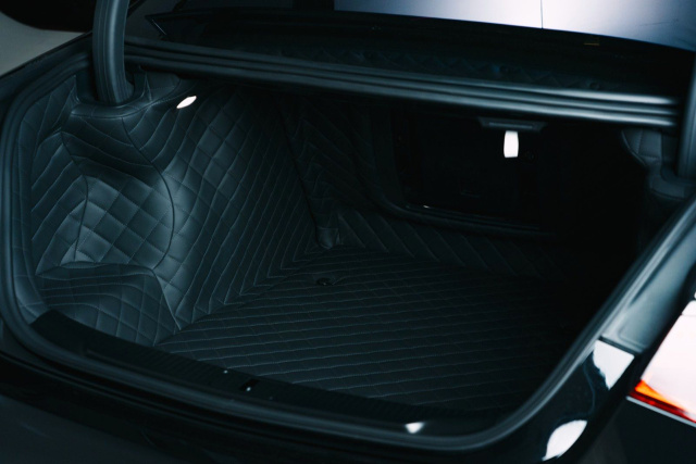 Auch im Kofferraum setzt sich dieser Luxus fort: Verkleidungsteile sowie der gesamte Ladebereich, inklusive Kofferraumdeckel, Scharniere und Schlossabdeckung, sind vollständig in Leder gehalten. Ein schwarzer Ladekantenschutz sorgt dabei für praktische Funktionalität bei gleichzeitig stilvollem Auftritt.