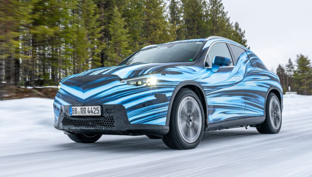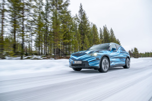 Wir fahren bergab, der Galtispouda-Berg ist schneebedeckt und wir haben mit "D" die stärkste Rekuperationsstufe eingelegt. Selbst bei wenig Haftung und einem starken Gefälle bremst das System den Stelzenstromer selbsttätig zuverlässig bis zum Stillstand ab. Jetzt nehmen wir unser Geschick selbst in die Hand beziehungsweise in den Fuß. Selbst bei einer harten Verzögerung werden nur 50 Prozent des Rekuperationspotenzials genutzt. „Die Abstimmung des ESP beinhaltet mittlerweile das ABS und die Hinterachslenkung. Das macht die Aufgabe deutlich komplexer“, erzählt Dominik Voogdt aus dem Alltag eines Testers. Das Entwicklungsziel ist klar. Selbst bei widrigen Bedingungen wie Glätte muss das Auto stabil bleiben und darf den Fahrer nicht verunsichern, was durch ein spürbares Eingreifen der Regelsysteme geschehen würde. Deshalb wird die Rekuperation bei solchen Bedingungen sukzessive und fein dosiert zurückgenommen. In engen Kurven geht, hilft die Hinterachslenkung, die die Räder mit maximal 4,5 Grad einschlägt.